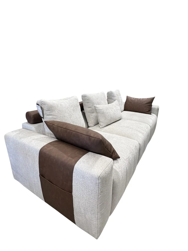 ספה דגם לורנזו מהממת במראה יחודי שילוב כריות בצורת גליל בגב הספה תוך שמירה על נוחות עם תמיכת כריות גב , מבנה משולב עץ מלא עם ספוג איכותי בד מהממם ושילוב דמוי עור בידיות הספה והגלילים