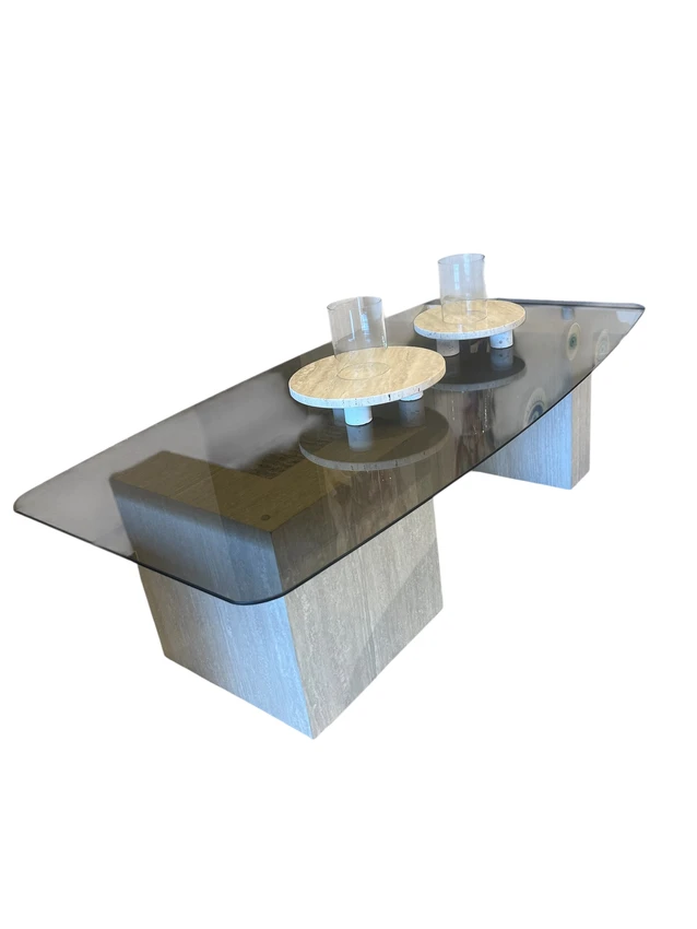 שולחן סלון ליצי מהממם זכוכית חומה, משולב רגלים מעוצבות במראה דמוי טרוונטין